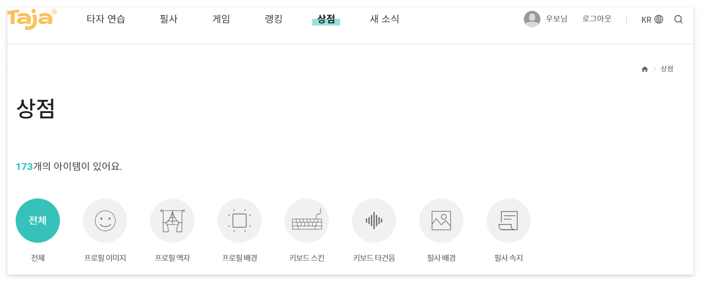 상점에서 다양한 프로필이미지 액자 이런 꾸미기 소재들을 구입할 수 있고, 타자연습을 할때 키보드 모양이나 소리 등을 바꿔서 할 수도 있어요. 예전에 내가 하던때랑은 차원이 다르게 재미요소들이 가미되어 있네요. 아이들이 흥미를 가지고 연습해주면 컴퓨터 사용하기가 더욱 편해질 것 같아요.