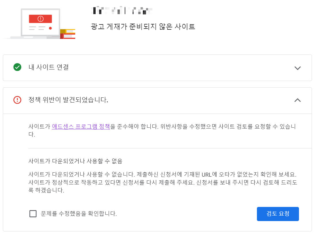 애드센스 애드센스 승인 과정 by neotany 2023. 6. 6. 반응형 애드센스 승인과정 중 두번의 사이트다운 내용을 받았습니다. 하지만 사이트다운은 제가 조치할 수 있는 사항이 아니라서 다시 재 신청을 두번 하였고, 그 다음 승인이 되었습니다. 반응형 공유하기 게시글 관리 AI시대를 살아가는 니오타니