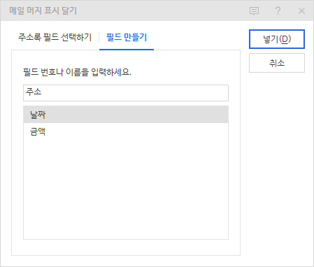 이렇게 저는 주소 필드이름을 적고 넣기를 눌러주었습니다.